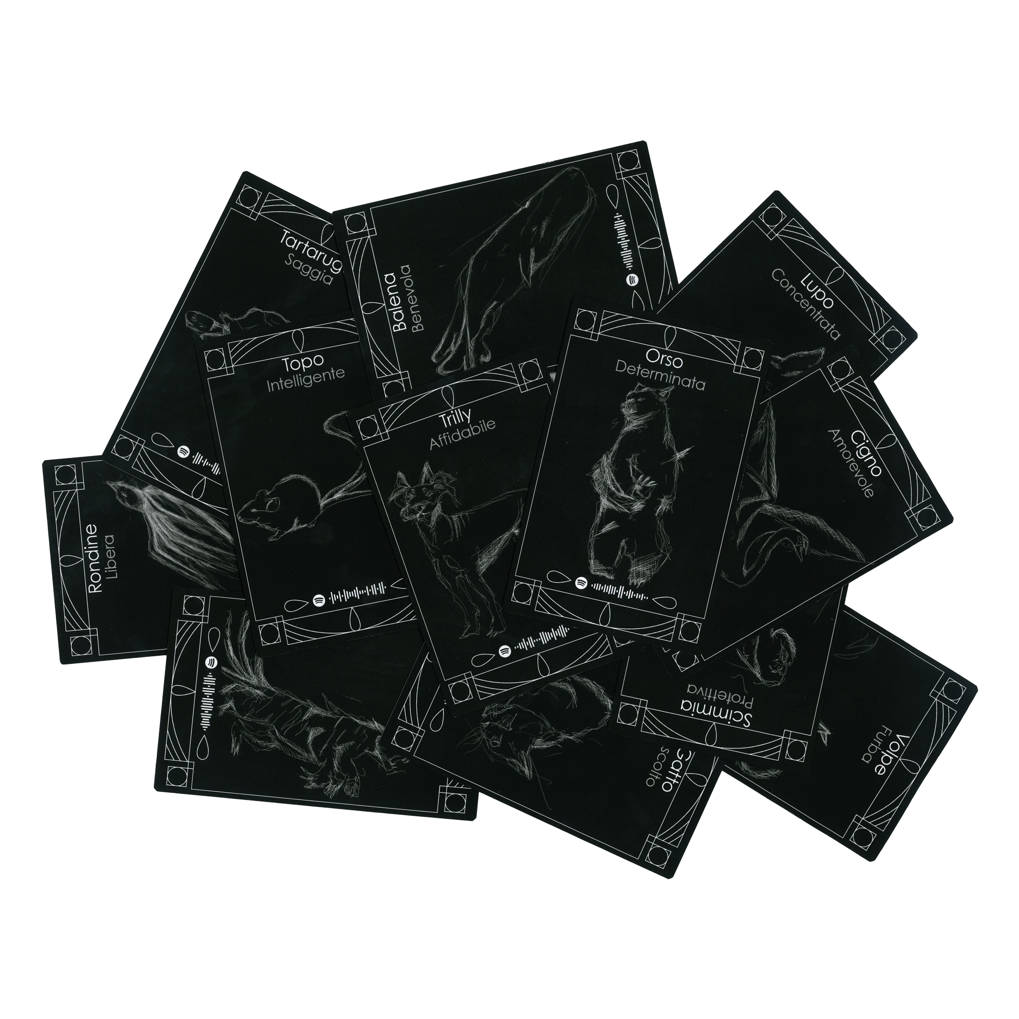 We all feel inadequate and/or lost. It's as human as breathing in certain moments, doubting yourself. Unfortunately, some people are their own biggest critics. I fell in love with someone like that. Very strong, intelligent and very charismatic, but in her sometimes, as unfortunately happens, she becomes discouraged and loses direction and forgets what strength and importance she has for me and what she is and expresses. In this set of 12 80mmx130mm cards, I have drawn animals in an abstract style that represent each of its most important characteristics. At the foot of the card there is a scannable Spotify QR code which leads to a song connected to the animal and also to the meaning of each card. On the back there is a mosaic found in his city that I used as a background and reminder of his origins. In this project I put my heart and soul into the woman who is protecting me from the world. If you feel like you could use these cards as your own, just ask me, and I'll send you the project file. Everyone should remember their best part of themselves.